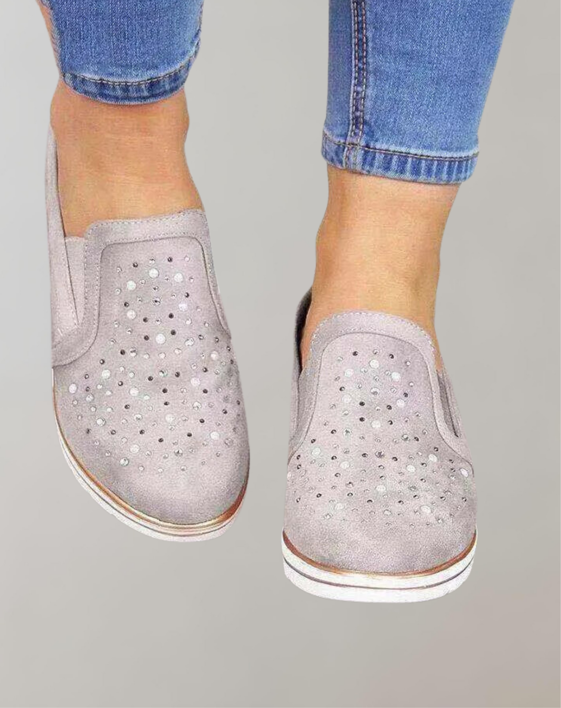 The Eadlyn Bling Wedge Loafers bring together effortless glamour and everyday comfort. Designed with sparkling rhinestone details, these slip-on loafers add a touch of elegance to any outfit while providing superior support and stability. The shockproof wedge sole ensures long-lasting comfort, making them perfect for all-day wear. Whether you're heading out for a casual stroll, meeting friends, or running errands, these stylish and supportive loafers will keep you feeling and looking great.