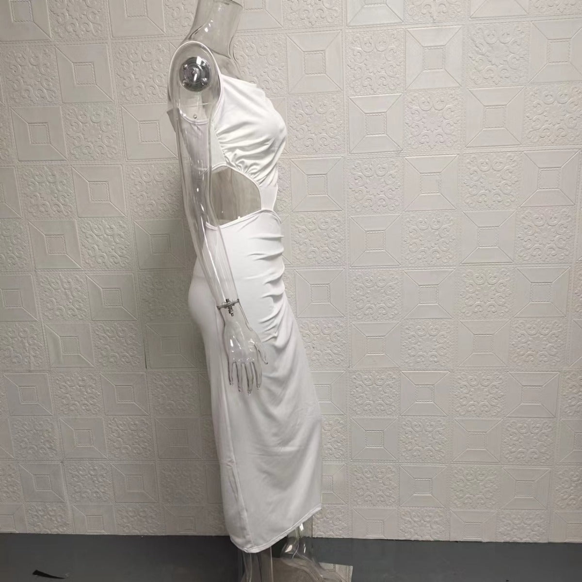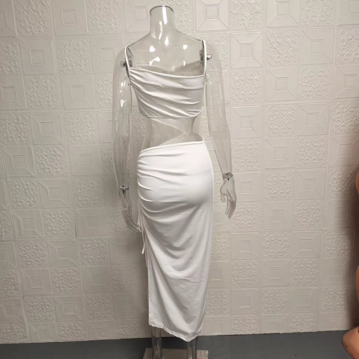 Meet the Sonoria bodycon midi dress, designed to turn heads with its elegant yet bold details. Crafted in a solid colour fabric, this dress features delicate spaghetti straps, a chic waist cut-out, and a stylish side leg slit for an eye-catching look. The asymmetrical neckline and pleated skirt add texture and movement, making it perfect for summer parties, evening events, or a night out. Its flattering fit hugs your curves while ensuring you stay comfortable and confident.