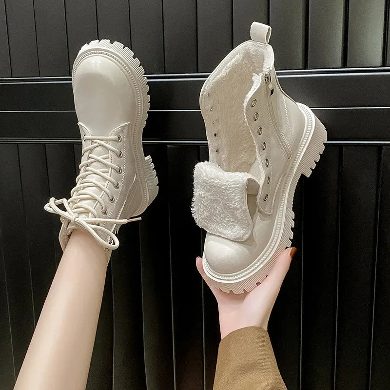 Helga | Women's Premium Leather Lace-Up Boots – Fleece Lined for Ultimate Comfort