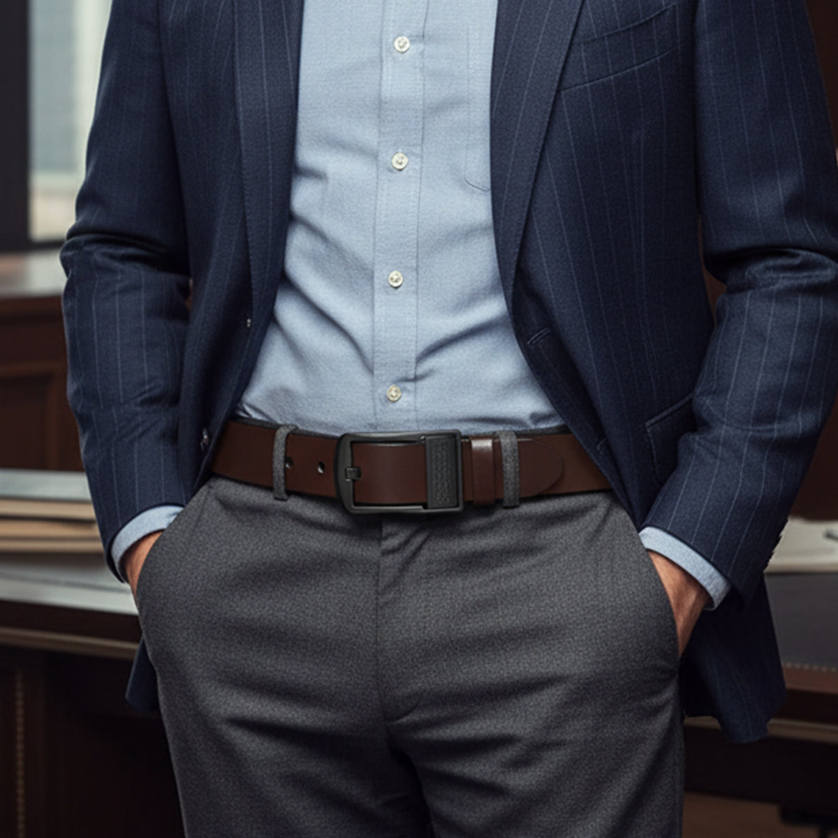The sleek metal alloy buckle and smooth leather finish make this piece a versatile essential for both casual and formal wear. Designed to age beautifully, it only gets better over time just like your style.